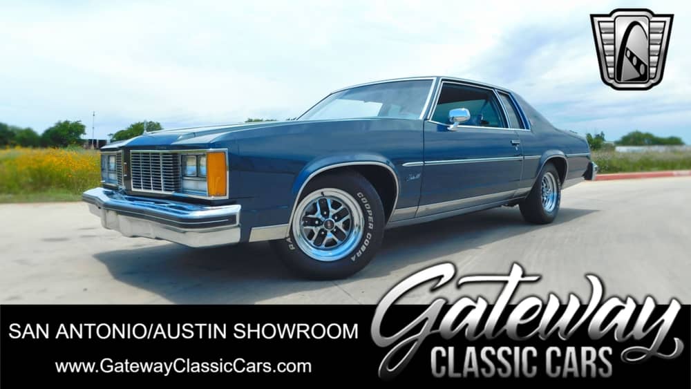 Gateway Classic Cars of San Antonio/Austin is proud to present this 1979 Oldsmobile Delta 88 Royale. Prepare to turn heads and captivate onlookers with the stunning Delta 88 in a striking dark teal finish, paired with a comfortable blue cloth interior, making it a statement piece in any car collection. The heart of this automotive masterpiece lies in its robust 350 V8 engine. With its potent powerplant, the Delta 88 effortlessly glides down the road, delivering a smooth and commanding ride. While this gem is certainly a nostalgic blast from the past, it still comes equipped with the essential features you need for an enjoyable ride. Stay cool and comfortable with the built-in air conditioning as you cruise down the highway, listening to your favorite tunes on the AM/FM radio and cassette tape player. With additional features such as cruise control, power steering, and power brakes, this Delta 88 is the epitome of comfort, style, and convenience. The two-spoke steering wheel frames a horizontal-sweep 85-mph speedometer and a fuel-level gauge. The five-digit odometer shows just over 69k miles, although true mileage is unknown. Its combination of classic charm, comfort features, and reliable performance makes it an exceptional choice for enthusiasts and collectors alike.