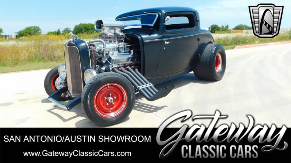 Gateway Classic Cars of San Antonio/Austin is please to introduce this classic beauty-a chopped Wescott bodied 1932 Ford Coupe, sitting on a TCI chassis, with a sleek black finish that nicely complements its stylish black interior. This iconic vehicle is waiting to impress all classic car enthusiasts with its timeless design and remarkable performance! Under the hood, this 1932 Ford Coupe boasts a powerful 540 Dart Block V8 engine fitted with J.E. pistons, Eagle rods & crank, topped with an 8-71 BDS blower, GM square port aluminum heads, dual QuickFuel 950cfm carbs, Zoomie headers & Harley baffles that ensure an incredible driving experience with its impressive 869 lb-ft of torque and an ureal 881 hp @ 6100rpms! All this is mated to this potent engine is a worked TH400 automatic transmission w/ trans. cooler, providing reliable shifting & putting the power into a 4-link Ford 9" rear end fitted with Summers Bros. axles and a 3.73 gear for an exhilarating ride. This '32 Ford Coupe comes with several desirable features to elevate its overall performance and convenience. Wilwood spindles, rear coil overs, Wilwood 4-wheel disc braking and the Mullins steering box are certainly welcomed additions to a build with this type of power!