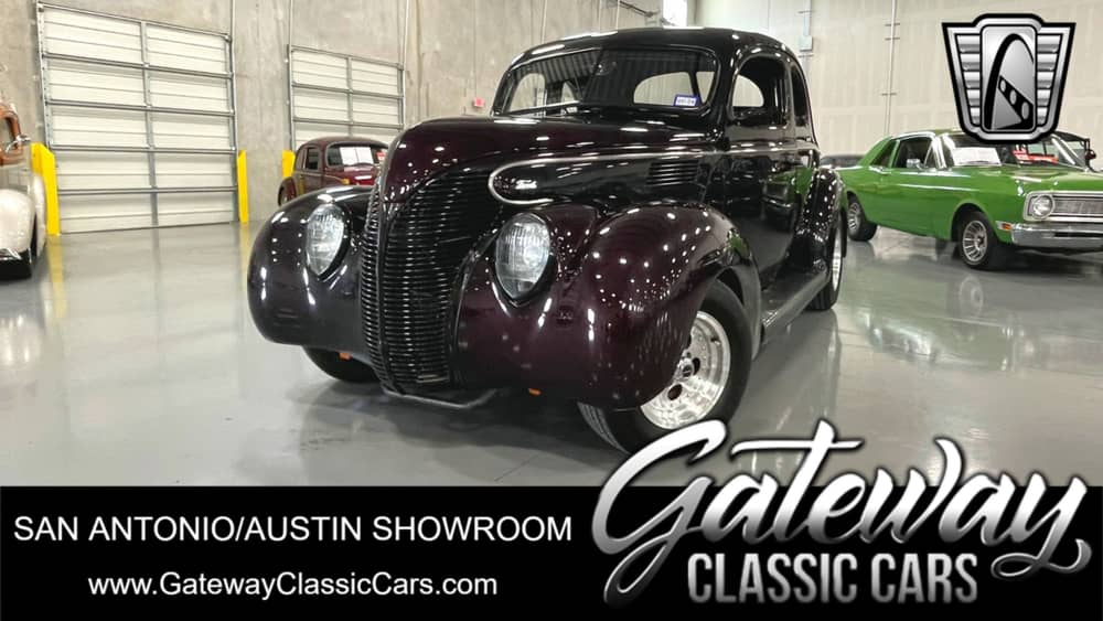 Gateway Classic Cars of San Antonio/Austin is proud to offer this 1939 Ford Coupe finished in Dark Cherry. There really isn't much you can do to make a late 30s Ford more attractive. The car's streamlined styling was a homerun when originally introduced; and today, it's a stunning example of some of the strongest elements of the highly regarded Art Deco movement. Under the hood, this Ford Coupe packs a punch with a Blueprint 383CID Stroker V8 engine pumping out a dyno verified 434hp & 473 lb-ft, topped with a Edelbrock ASV2 carburetor and paired with a smooth shifting Turbo 350 automatic transmission, this vehicle brings you unparalleled performance and a thrilling driving experience. Inside, the car is furnished with a luxurious gray/red leather interior, a blend of classic charm and modern comfort. The seats are power-adjustable, providing optimal comfort for every passenger. The cabin also features power steering and power brakes, ensuring a smooth and effortless driving experience. For entertainment lovers, an AM/FM radio with a Bluetooth adapter is fitted, providing the soundtrack for your drive. The car stands proudly on Formula aluminum wheels, wrapped in radial tires. These, coupled with its power steering and brakes, ensure that every journey is as smooth and controlled as possible. Hurry and get behind the wheel of this timeless classic today.