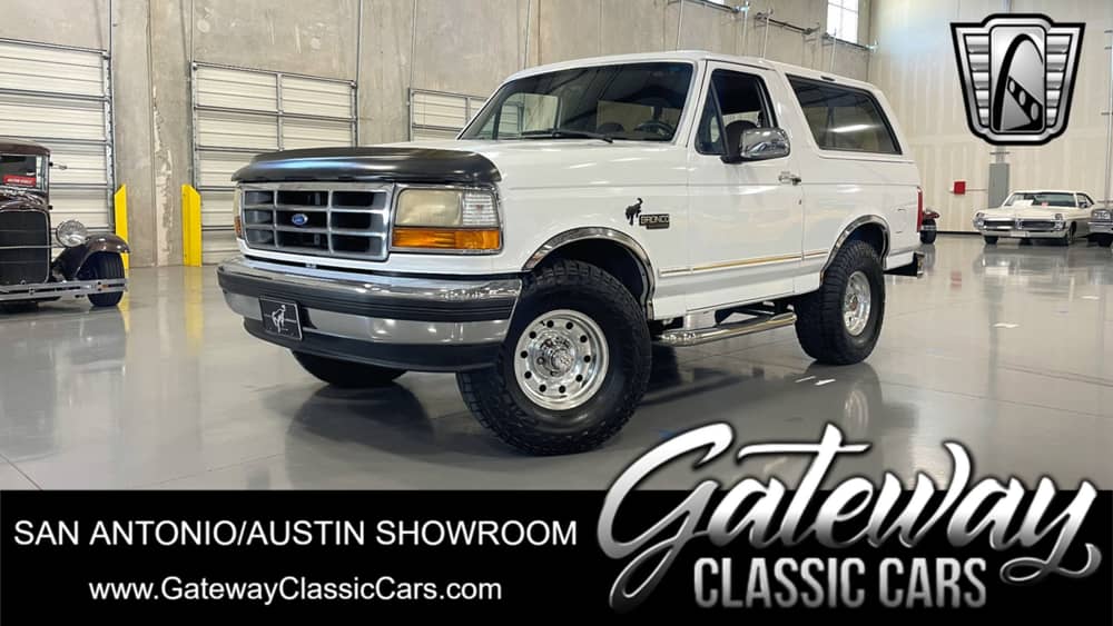 Gateway Classic Cars of San Antonio/ Austin is proud to present this 1994 Ford Bronco, a timeless piece of automotive history. This vehicle is a blend of style and performance, boasting a sleek white exterior that beautifully complements its tan cloth interior. Under the hood is the desirable/larger optional powerhouse 5.8-liter V8 partners with a 4-speed automatic transmission. Fueled by an electronic fuel injection system, it ensures efficiency and reliability on every terrain. The Bronco is equipped with air conditioning, ensuring a comfortable ride no matter the weather. The power seats, power locks, power windows, and power steering add an extra layer of convenience, making your driving experience as effortless as possible. For your entertainment needs, the Bronco comes with an AM/FM radio, a cassette tape player, and a 6 Disc CD player, offering a variety of options to keep you entertained on the road. The aluminum wheels add a touch of elegance to the vehicle, while the radial tires ensure a smooth and stable ride. The power brakes provide stopping power, and the tilt steering wheel allows for easy adjustment to suit your driving style. The cloth bucket seats with a console between them provide comfort and utility. From the roar of its V8 engine to the comfort of its well-appointed interior, this Bronco is for those who appreciate the spirit of American adventure.