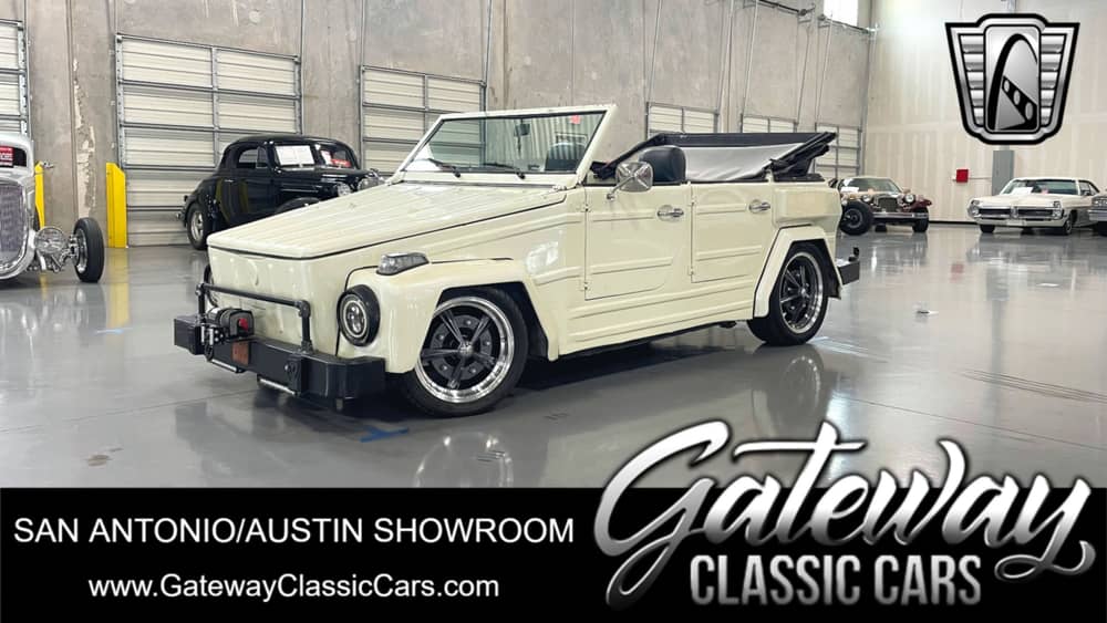 Gateway Classic Cars of San Antonio/Austin is proud to present this 1973 Volkswagen Thing. The Volkswagen Type 181, which was fondly referred to as the "The Thing" in the US market, was initially designed as a low-cost and sturdy quarter-ton Jeep equivalent for the German military. However, Volkswagen witnessed a growing demand from the public for a vehicle that could go anywhere, and thus, a civilian version of the car was introduced. The vehicle utilized a modified Karmann Ghia Chassis and Beetle drivetrain, which meant that access to the vast Volkswagen dealership network for convenient servicing was always within reach. Under the hood, you'll find an impressive 1800CC Transverse 4 other engine paired with a 4 Speed manual transmission, offering a dynamic driving experience that is both engaging and exhilarating. This powertrain combination ensures a smooth and responsive ride, bringing joy to every journey. The manual convertible top lets you savor the open-air experience, making every ride a memorable adventure. This 1973 Volkswagen Thing is a vehicle that car enthusiasts and collectors will appreciate for its unique character and charm. Take the opportunity to own a piece of automotive history with this exceptional Volkswagen Thing.