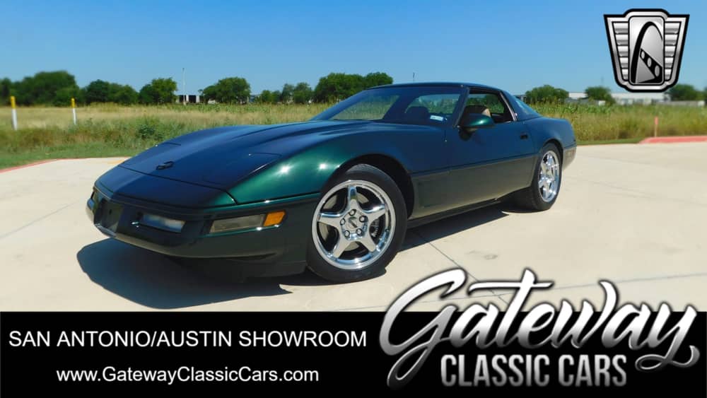 Gateway Classic Cars of San Antonio/Austin is proud to present this absolutey gorgeous, and very well cared for, 1996 Chevrolet Corvette LT4. For the last year in the C4 production, Corvette engineers were able to extract 30 extra horses out of the existing LT1 for this new 5.7-liter by giving the motor a total overhaul. They added new aluminum heads, a freer-flowing intake, a new roller-type timing chain, a compression boost. This Corvette is powered by a LT4 V/8 paired with a ZF six-speed manual transmission and a limited-slip differential. The car is finished very nicely in a stunning Polo II Green Metallic and features a removable tinted roof panel, power-retractable headlights, integrated fog lights, heated power-adjustable side mirrors, and quadruple taillights. The cabin features power-adjustable sport bucket seats trimmed in Saddle Beige leather with matching door panel inserts and carpets. The interior has equipment that includes a Delco-Bose AM/FM/CD/cassette stereo, a digital clock, automatic climate control, cruise control, keyless entry, and power windows and locks. Equipment on the exterior includes the Selective Ride and Handling Package, 17″ 5-spoke polished alloy wheels mounted on Nitto NT555 radial tires. The leather-wrapped steering wheel frames a central digital speedometer, a tachometer, and gauges for oil pressure, oil temperature, coolant temperature, and battery voltage. The digital odometer shows 107k miles that have been CARFAX verified. This is a vehicle that should not be overlooked and is a “classic” with some modern performance and interior features!