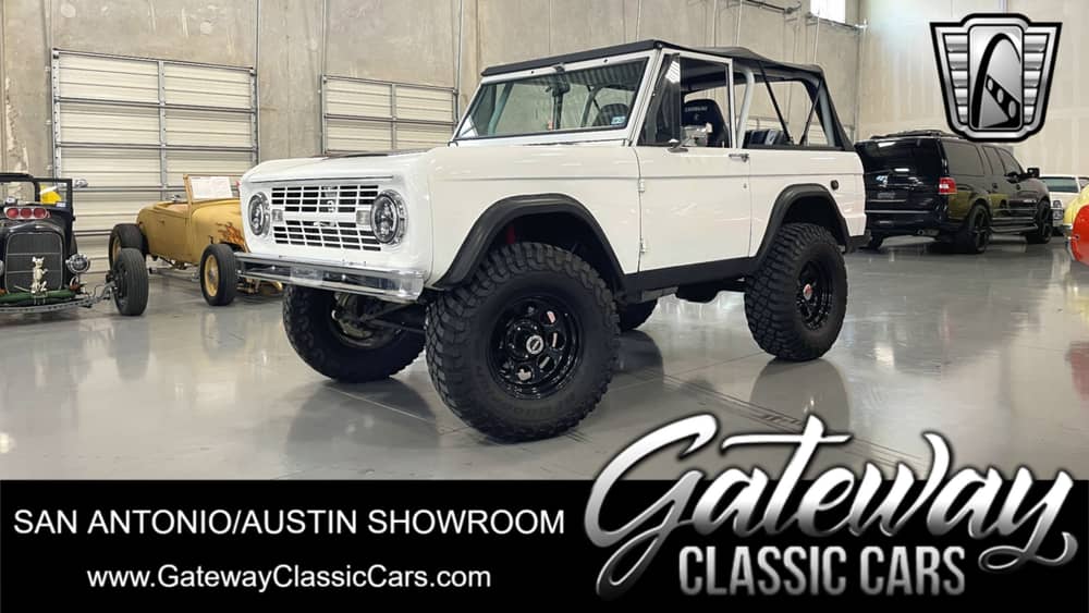 Gateway Classic Cars of San Antonio/Austin is happy to present one of the most durable Fords ever produced, the 1968 Ford Bronco! Introducing a classic icon of American automotive history: the 1968 Ford Bronco. This stunning Bronco boasts a timeless white exterior that nicely contrasts its black powder coated wheels, removable soft top & it's sleek black interior with Corbeau custom seats & 3-Point harnesses, creating a striking visual appeal that turns heads wherever it goes! Under the hood, you'll find a powerful 1991 5.0L Cobra V8 paired with a newer 3-speed manual transmission, delivering an exhilarating driving experience that true enthusiasts will appreciate.