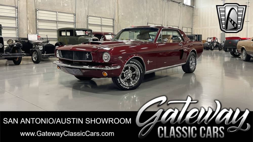 Gateway Classic Cars of San Antonio/Austin is excited to present this 1966 Ford Mustang. The Ford Mustang, a symbol of American automotive originality, has captivated car enthusiasts since its debut in 1964. Known for its sleek design, powerful performance, and cultural significance, the Mustang has evolved into more than just a vehicle-it has become a representation of personal freedom and expression. This particular model boasts a captivating burgundy exterior, a color that exudes both elegance and timeless appeal. Complementing the exterior is a luxurious sand leather interior, offering a refined and comfortable driving experience that is sure to impress both driver and passengers alike. Under the hood, this Mustang is equipped with a powerful 289 CID V8 engine with a Weiand intake, Edelbrock 4barrel carburetor, electronic ignition and aluminum radiator, paired with a 4-speed manual transmission with a Hurst shifter. This combination promises an engaging and spirited drive, capturing the essence of what makes the Mustang a beloved classic. The inclusion of power steering with tilt wheel and power brakes with front disc ensures a smooth and responsive handling experience, making every drive both enjoyable and effortless. This 1966 Mustang comes with a range of features designed to enhance your driving experience. The air conditioning system provides comfort on warm days, while the AM/FM radio offers entertainment options for your journeys. The vehicle is fitted with custom aluminum wheels and radial tires, adding a touch of modern flair to its classic design. Safety and comfort are also prioritized with the inclusion of seatbelts, ensuring peace of mind for all occupants. The combination of these features makes this 1966 Ford Mustang not only a beautiful piece of automotive history but also a practical choice for those seeking a classic car with modern conveniences. Whether you're a collector or simply an enthusiast of classic cars, this Mustang is sure to make a lasting impression.