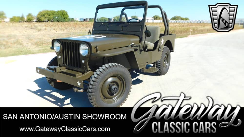 Gateway Classic Cars of San Antonio/Austin is pleased to present this 1953 Willys Jeep CJ-3A. Willys-Overland introduced the CJ-3A model in 1949 to replace the CJ-2A, due to a "slump" in CJ-2A sales, bringing with it a few reasonable minor interior updates regarding comfort and drivability. The CJ-3A was part of the Universal CJ series, a model intended for agricultural and industrial applications in the civilian market, an area in which Willys-Overland felt it would be a good fit, as the CJ employed the same "utilitarian" features that gave the MB model remarkable success in WWII. Even so, Willys-Overland realized the value of driver comfort, even in a "work" vehicle such as the CJ. Updates in the new CJ-3A, while minor, included increased leg room, leakproof connection features for the canvas top and front side of each door, thicker cushions and more headroom, and the addition of 2-3/8" to the overall height (with windshield up). The rear wheel well was shortened, and the driver's seat was moved toward the rear of the vehicle, shortening the deck. A one-piece windshield was also introduced, with an improved vacuum-type windshield wiper for greater road visibility, and a windshield ventilator for the circulation of fresh air. The suspension was a notable improvement, as the vehicle was still being used for various agricultural applications The 134ci Go Devil inline-four was factory rated at 60 horsepower and 106 lb-ft of torque. Power is sent to the rear or all four wheels through a three-speed manual synchromesh transmission and a dual-range transfer case. The seats are upholstered in tan cloth and the steel dashboard houses an instrument lamp, choke and throttle control knobs. Centrally mounted instrumentation consists of a 70-mph speedometer, an amp meter, and gauges for fuel level, coolant temperature, and oil pressure. The six-digit odometer shows 9581k miles, and true mileage is unknown. If you are looking for a classic that is sure to attract a crowd, this is the one you want to own!