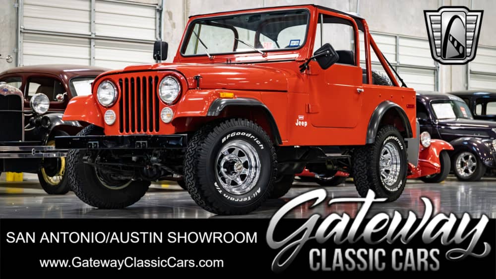 Gateway Classic Cars of San Antonio/Austin is excited to present this 1977 Jeep CJ-7, a vehicle that embodies the spirit of adventure and rugged reliability. This particular model boasts a striking red exterior that captures attention and exudes a timeless appeal. The vibrant color not only highlights the iconic design of the CJ-7 but also complements its bold and adventurous character. Inside, you'll find a comfortable and functional black interior, designed to enhance your driving experience. The interior layout is simple, focusing on practicality and ease of use, making it an ideal choice for those who appreciate simplicity and functionality in their vehicles. The black finish adds a touch of elegance to the rugged nature of the Jeep, creating a harmonious balance between style and utility. Under the hood, this CJ-7 is powered by a robust 258CID Inline 6 engine, paired with a 4-speed manual transmission. This combination offers a driving experience that is both engaging and dependable, allowing you to navigate a variety of terrains with confidence. The CJ-7 features a manual convertible top, offering the flexibility to enjoy open-air driving whenever the mood strikes. This feature enhances the Jeep's versatility, making it suitable for both on-road and off-road adventures. Additionally, the vehicle is equipped with seatbelts, prioritizing safety and ensuring a secure ride for all occupants. Overall, the 1977 Jeep CJ-7 is a testament to the enduring appeal of classic Jeeps, combining iconic design with practical features. Whether you're a collector or an adventurer at heart, this vehicle offers a unique opportunity to own a piece of automotive history that is ready to take on new journeys.