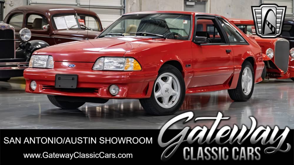 Gateway Classic Cars of San Antonio/Austin is proud to present this 1991 Ford Mustang GT. This iconic vehicle is presented in a striking red exterior that captures the essence of its era. Under the hood, you'll find a 5.0-liter V8 engine, paired with a manual transmission, offering an engaging driving experience that enthusiasts will appreciate. With the owner claiming the mileage at just 6,927, this Mustang GT promises a unique opportunity to own a vehicle that has been cherished over the years. Step inside to discover a well-appointed interior featuring charcoal cloth seats that provide both comfort and style. For your entertainment needs, the car includes an AM/FM radio, allowing you to enjoy your favorite tunes as you cruise down the road. This Mustang GT is designed with convenience in mind, featuring power windows, power locks, and power steering, making every drive a breeze. The inclusion of power brakes enhances your control and safety on the road. Additionally, the vehicle is equipped with cruise control, allowing for relaxed, effortless long-distance travel. This 1991 Ford Mustang GT is a testament to the timeless appeal of the Mustang brand, offering a blend of performance, style, and comfort that continues to captivate enthusiasts and collectors alike.