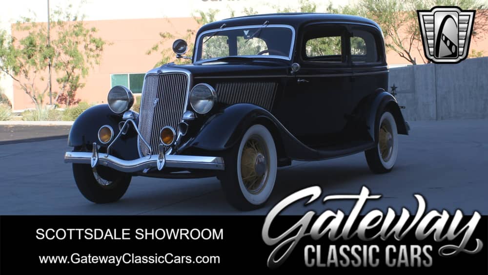 Gateway Classic Cars of Scottsdale is pleased to present for sale, on consignment, this rare and sought after 1934 Ford Victoria V8 Coupe! The Victoria was Ford's deluxe, top of the line body style nicknamed the Vicky. The 1934 Victoria featured a very stylish slant back rear body with a hidden fold out trunk lid, making this car very desirable at the time. The V8 engine's horsepower increased from 75 to 85 in 1934 and was the engine powering the vehicle that notorious Depression Era bandits, Bonnie and Clyde were caught in. Both the engine and transmission have been rebuilt with just around 130 miles on them since the work was completed. The restoration on this beauty was completed approximately 10 years ago and has been lovingly stored and cared for by the current owners. The black exterior and tan cloth interior is in good shape and ready for the next show. This is a rare opportunity to pick up a really neat piece of history, give our sales staff a call today!