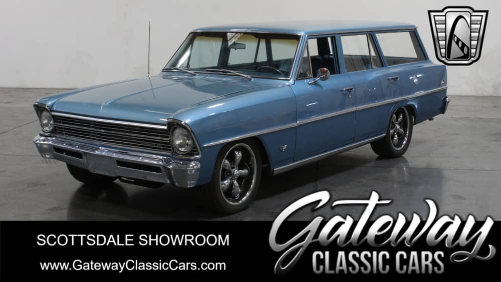 Gateway Classic Cars of Scottsdale Arizona is pleased to present for sale, on consignment, this clean and well documented 1967 Nova Wagon! Only 12,900 wagons were produced in 1967 and over time and the demise of many who met their fate with the crusher, the rare factor is there and getting greater as the years continued to pass. Powering this sled is a 355 cubic inch V8 mated to a 4 speed automatic transmission. Features include AM/FM/Bluetooth Radio w/ large display screen, Digital Gauges, Custom Wheels, Power Brakes, Power Steering, Seatbelts, Tilt Steering, Vinyl Interior, Radial Tires and Seat Belts. This is a 3 owner car that spent most of it's life in sunny California. This car shows very well with nice paint, a well cared for interior and a whole lot of style. Contact our sales staff to find out all the details on this car and the purchase process!