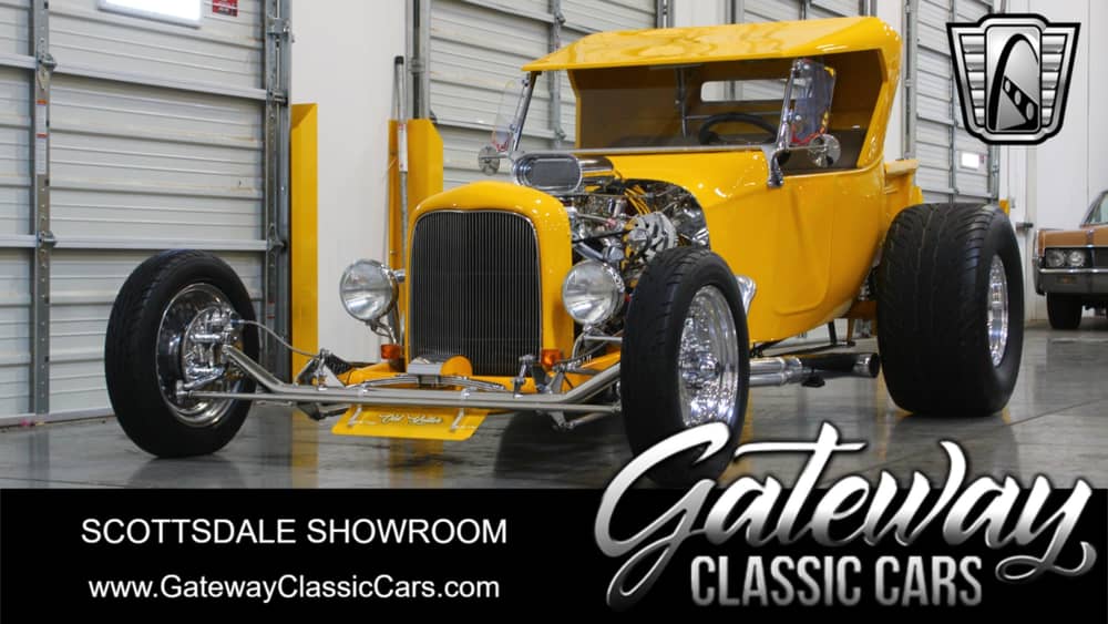 Gateway Classic Cars of Scottsdale is pleased to have this 1923 Ford T-Bucket on hand for sale, on consignment! The kit was purchased by the current owner from Total Performance in Wallingford CT in 2004 and was running and driving by 2009. The Nissan Solar Yellow paint (Paint Code EW3) over Tan interior not only looks great, it also photographs and shows very well. There is a lot to take in but that one piece Carson-Style fiberglass top that is mounted to a cantilevered-hinge for show or it can be completely removed, is really the icing on the cake.