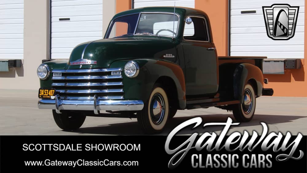 Gateway Classic Cars of Scottsdale is pleased to present for sale, on consignment, this stunning 1953 Chevrolet 3100! It's always a pleasure any time we get a Chevrolet pick up in, and it's been a long time since we've had one in this condition. Truly a piece of art and history and finished in green over gray, black and green interior that just commands your attention.