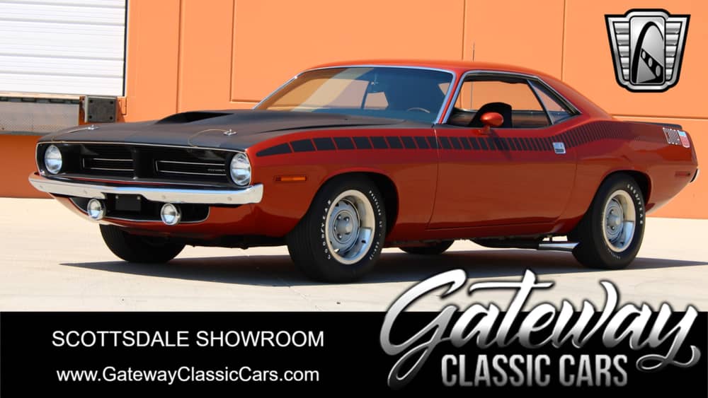 In summary, the 1970 Plymouth Barracuda Cuda AAR 340 Six Pack is a remarkable example of American muscle car engineering and design. Its burnt orange exterior, black vinyl interior, and powerful 340 Six Pack V8 engine make it a standout choice for enthusiasts and collectors alike. With features like an AM radio, bias ply tires, power brakes, power steering, and seatbelts, this Barracuda offers a blend of classic charm and practical functionality that is sure to impress.