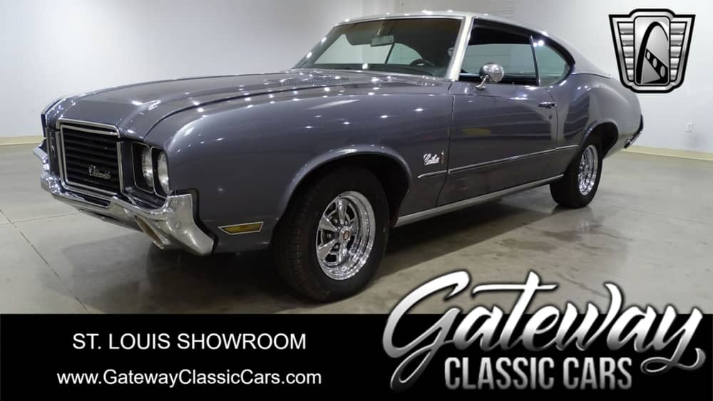 Gateway Classic Cars of St. Louis is proud to digitally present this 1972 Oldsmobile Cutlass S Sports Coupe. This timeless vehicle showcases a striking silver exterior that beautifully complements its sleek and sophisticated design. The bold lines and iconic silhouette of the Cutlass S make it a standout on the road, capturing the essence of 1970s muscle car styling.