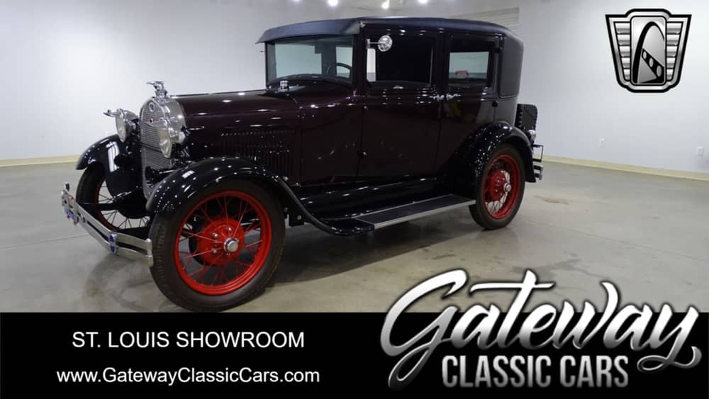 Gateway Classic Cars of St. Louis is proud to digitally present this beautiful 1929 Ford Model A, finished in a stunning Cadillac Black Cherry with red wire wheels.