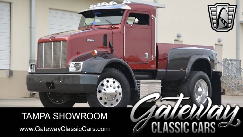Gateway Classic Cars of Tampa is proud to offer this unique 2001 Peterbilt Conventional 330 Custom Pickup Truck. The current owner has enjoyed this overkill pickup and is ready to allow it into a new collection. Walking around this Peterbilt, one should notice the two-toned gloss red and gray paint theme, chrome wheels, single rear wheel, a chopped top, and diamond plated bedliner. Adding to the curb appeal is a split front windshield, open tailgate, chrome cap over the windshield, and side exhaust. The interior flows well with the uniqueness of the exterior. The interior sports black leather bucket seats with seat belts, woodgrain dash insert, custom shift knob, black vinyl dash, AM/FM/Cd player, and black carpeting. Additional comfort features on this truck include tilt steering wheel, leather, power steering, air brakes, etc. Powering this beast is a Caterpillar 3126B Diesel engine that is rated at 210HP and mated to a 6-speed manual transmission. The odometer reads 465,112 that lines up with what is documented on the accident-free history Carfax. If you are looking to pull a huge boat, camper, or simply want to look awesome cruising around this could be the truck for you.