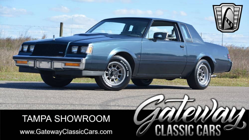 This 1987 Buick Regal Turbo-T is listed by our Tampa Showroom and can be viewed in greater detail including 100+ HD pictures and an HD video at www.GatewayClassicCars.com. For additional information, please call our knowledgeable staff at (813)645-6200 or email us at . Our Tampa Showroom is located at 361 30th Street NE Ruskin, FL 33570. Hours: Monday through Saturday, 9 AM to 5 PM EST, please reach out to set an appointment.