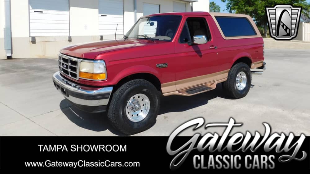 This 1995 Ford Bronco is listed by our Tampa Showroom and can be viewed in greater detail including 100+ HD pictures and an HD video at www.GatewayClassicCars.com. For additional information, please call our knowledgeable staff at (813)645-6200 or email us at . Our Tampa Showroom is located at 361 30th Street NE Ruskin, FL 33570. Hours: Monday through Saturday, 9 AM to 5 PM EST, please reach out to set an appointment.