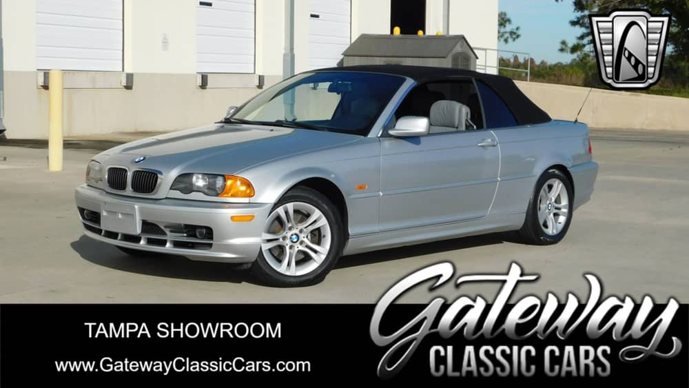 Gateway Classic Cars of Tampa is proud to offer this amazing 2000 BMW 323ci convertible. This lovely silver, 323ci convertible is a low mileage cruiser, and everything works including ice cold AC, power windows and automatic top. The car has a Carfax verified 45,000+ miles on the odometer. The interior is covered in grey leather and is rip and tear free. E46 BMWs are a delight to drive, and this one doesn't disappoint. The 2.5L inline six revs quick and smoothly and the automatic transmission shifts like butter. The handling is tight, and the suspension is rattle and squeak free along with the body. Overall, this 2000 BMW 323ci is a great top down runabout and cruiser, all it needs is a new driver!