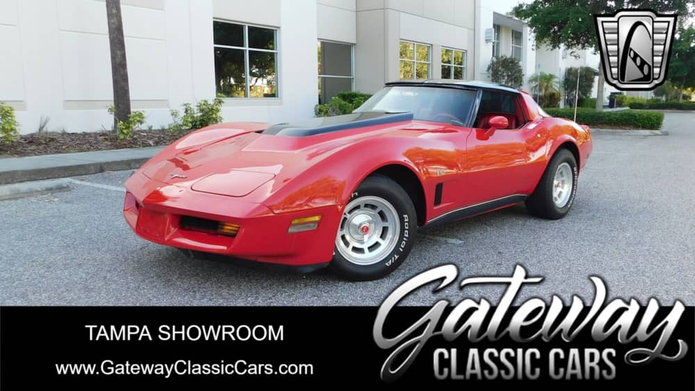 Gateway Classic Cars of Tampa presents this custom 1980 Chevrolet Corvette. This red and black rocket packs a Blueprint 383 Stoker V8 backed by a Tremec five-speed manual. All of the extra power is put to the ground through a fully refreshed suspension with new bushing U-joints and shocks. The interior is color matched in red and black and looks amazing. The 383ci V8 breaths through a fresh Holly Double Pumper 650cfm carb and exhaust through a set of long tube headers. This rad Vett isn't only about power and performance, it features cold AC, AM/FM radio with CD player, power brakes and power steering. A neat feature is the mirror tinted T-tops to keep you cool when cruising in the sun. This 1980 Chevrolet Corvette is a classic beauty with a powerful engine and a range of features. It's a choice Corvette for those who appreciate the blend of style, performance, and comfort.