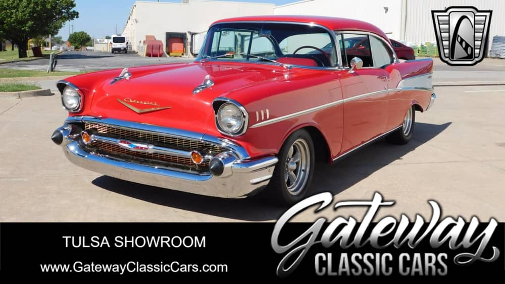 Gateway Classic Cars of Tulsa is proud to represent this smooth 1957 Chevrolet Bel Air. This stunning vehicle boasts a classic vibrant red exterior that captures the essence of the era's bold design. Step inside to find a nicely maintained and really comfortable black and grey cloth interior, offering a timeless and comfortable driving experience.