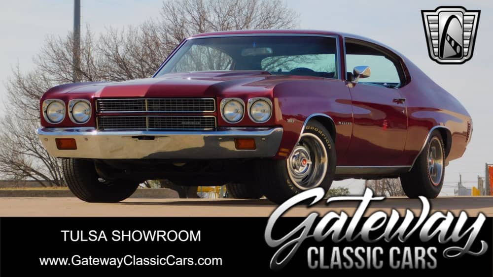 Gateway Classic Cars of Tulsa is proud etc. to digitally present this classic gem that embodies the spirit of American muscle and timeless style: the 1970 Chevrolet Chevelle Malibu. This iconic vehicle is dressed in a striking red exterior that captures attention and admiration wherever it goes. The bold hue is complemented by a sleek black interior, offering a sophisticated contrast that enhances its overall allure.